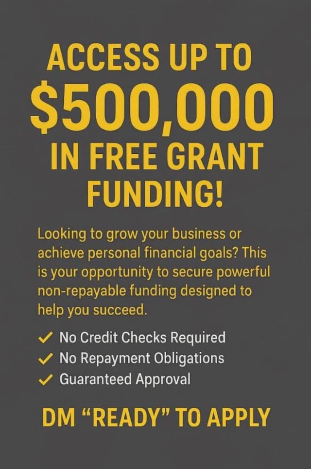 $500,000 Grant Funding alert This isn’t loan-it’s non repayable funding for your business or personal goals!